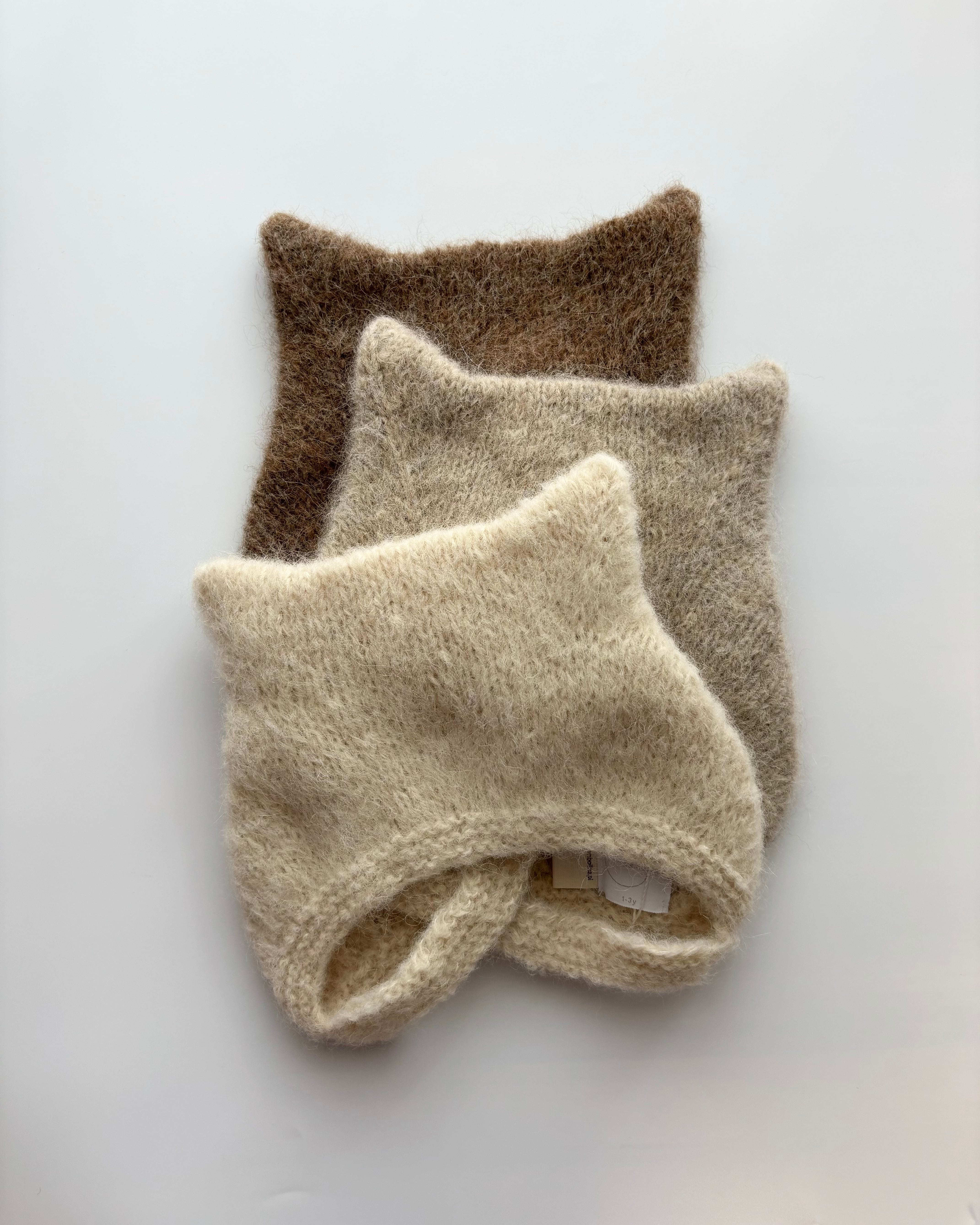 ※手編みのため、ボンネットの形やあご紐の長さ等に個体差が生じる可能性がございます。